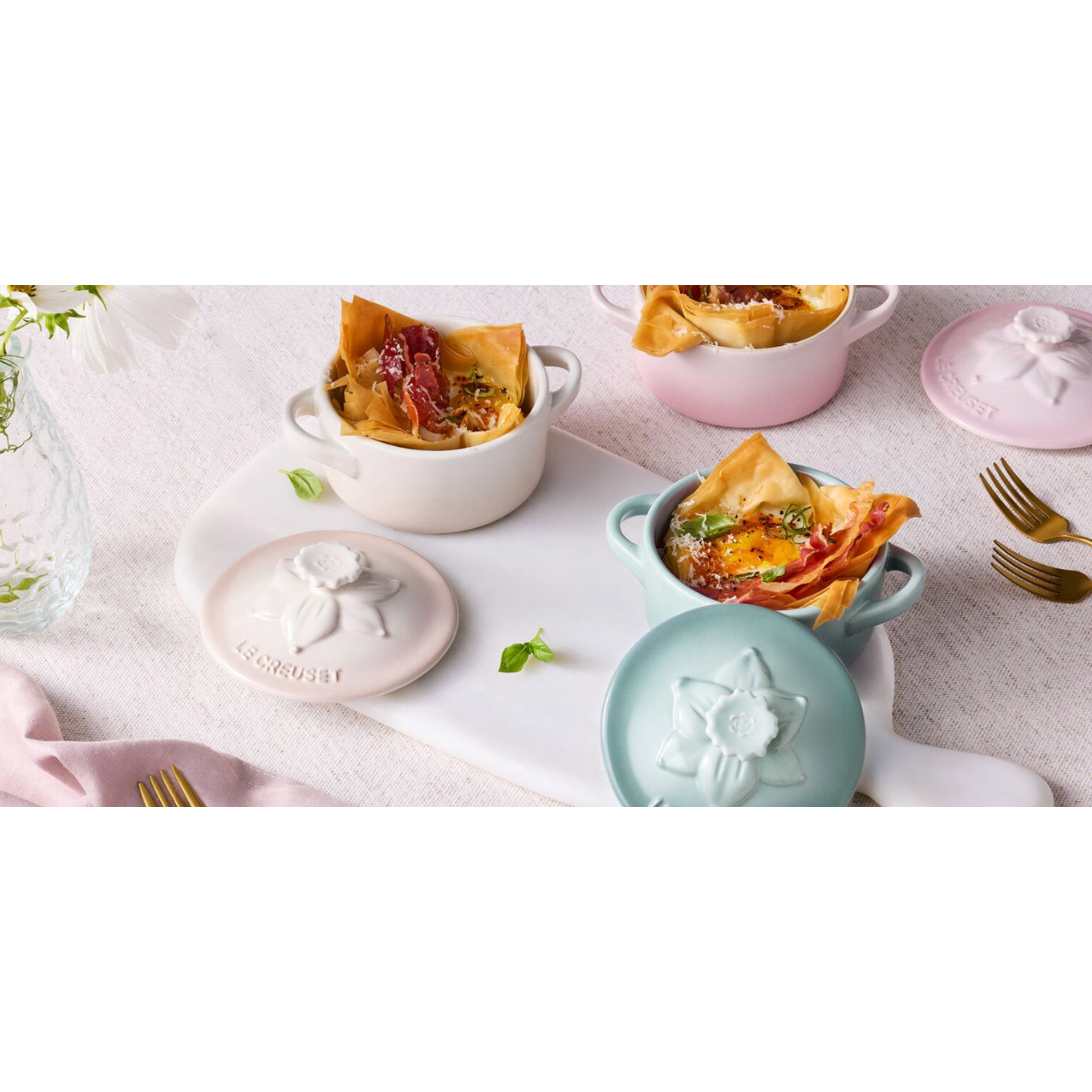 Add a touch of garden charm to your cooking with the Jardin Petite Casserole. This petite casserole is perfect for individual servings and makes a special piece in any kitchen collection. The lid is beautifully crafted to resemble a daffodil, adding an extra layer of elegance and whimsy to your culinary creations. Available in Sea Salt, Meringue and Shell Pink.