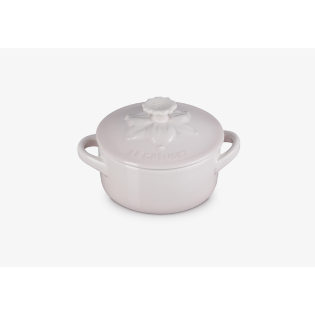 Add a touch of garden charm to your cooking with the Jardin Petite Casserole. This petite casserole is perfect for individual servings and makes a special piece in any kitchen collection. The lid is beautifully crafted to resemble a daffodil, adding an extra layer of elegance and whimsy to your culinary creations. Available in Sea Salt, Meringue and Shell Pink.