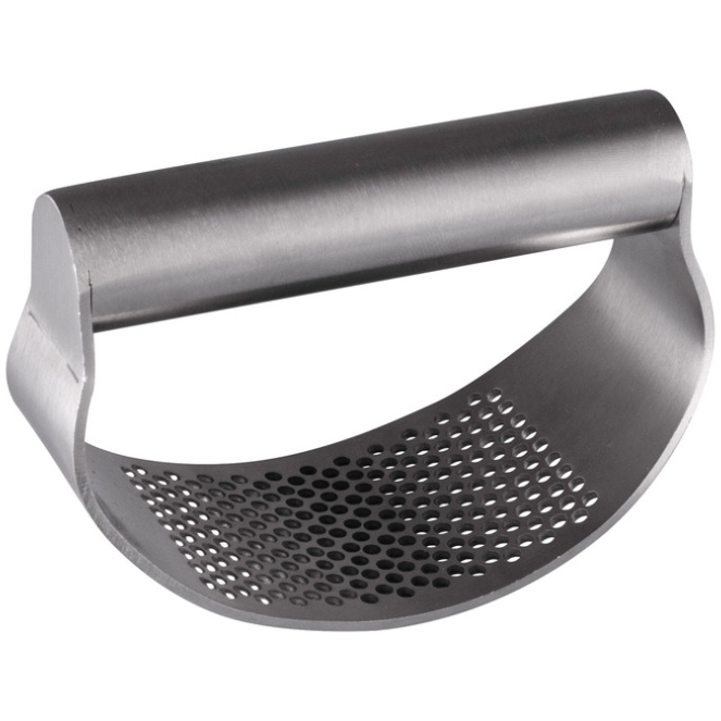 Crush and mince cloves easily and evenly with the Avanti Garlic Rocking Press. Stylish and simple, this indispensable tool is also suitable for crushing and mincing peeled ginger root, chopped onion and nuts. Made from brushed 18/8 stainless steel, it is sturdy, durable and features a large handle for a comfortable grip. Unlike a conventional garlic press, by using downward pressure and a rocking motion, it crushes cloves quickly and evenly, forcing the pieces up through the perforated arc. Crushed and minced pieces are collected on the inside surface of the press, allowing them to be spooned or scraped easily into a bowl or pan.