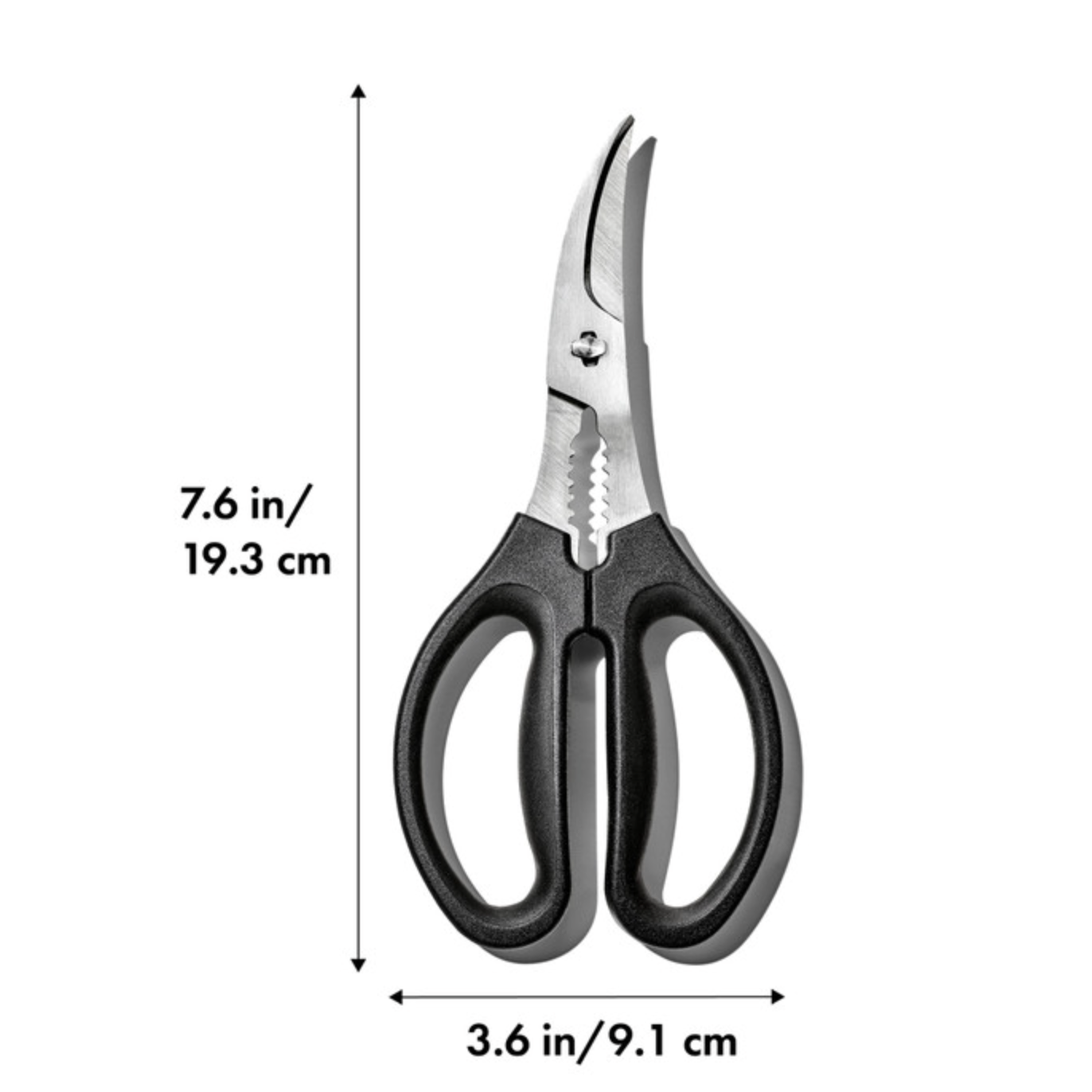 The OXO Good Grips Seafood Scissors make cutting through shells and fish a breeze. Featuring a special curved design for lobster tails, crab claws and shrimp and a built-in cracker between the handles for all-in-one convenience. With soft, comfortable handles these sheers won’t slip even when your hands are wet. WARNING: Product is very sharp. Handle with care when unpacking, using, cleaning and storing. Keep out of reach of children.