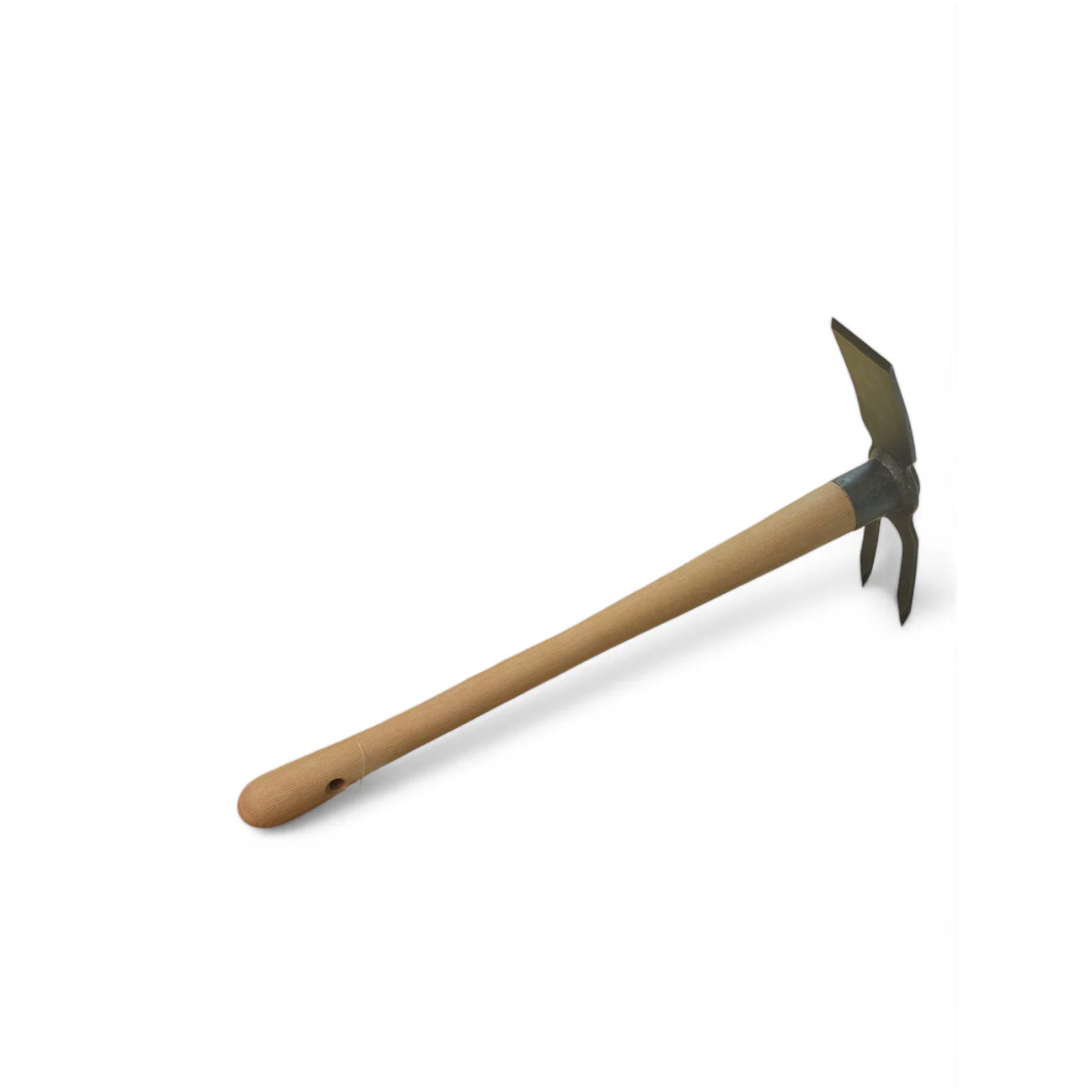 By hoeing soil you are able to break it. The strong durable blade is good enough to dig up roots. The narrow tines on the top can be used as soil breaker and to smoothen the surface. Made in Holland by DeWit with a lifetime warranty.